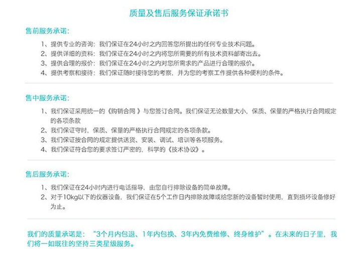 合眾電氣一直致力于電測設備的研發和生產,為了生產出性能可靠,質量過硬能寧客戶滿意的設備我們合眾人一直在努力,我們的質量承諾是:“三個月內包退、一年內免費維修、終身維護”。在未來的日子里我們將一如既往的堅持三類星級服務。我們合眾除了對質量做出了承諾以外,我們還有一套完整的售前、售中、售后的服務承諾,所以各位尊敬的新老客戶可以放心的選購合眾電氣的設備。