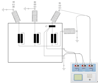 注意:一次端子H1不能接地,否則一次側都接地了,則智能互感器測試儀不能獲取正確結果。