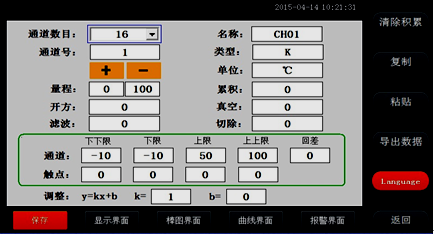 調(diào)整:對通道值的修正調(diào)整,使其顯示理想的數(shù)值。通過調(diào)整k值來調(diào)整溫度的倍數(shù)(乘除),調(diào)整b值可以調(diào)整數(shù)值的正負值的大小。