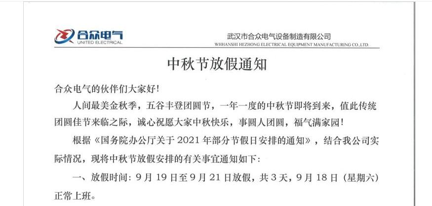 合眾電氣中秋節員工福利及放假通知 相關產品更新中...