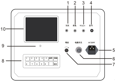 5.電源插座   6.電源開關   7.增益調節(jié)            8.操作鍵盤