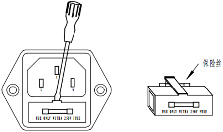 本儀器使用 AC 220V、50Hz、5A 直徑 4mm 長(zhǎng)度 20mm 保險(xiǎn)絲