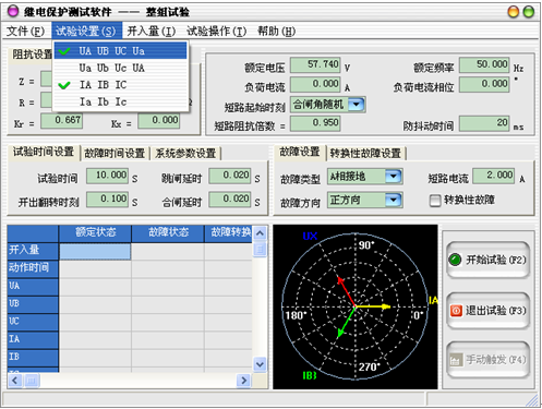 Ia Ib Ic:微機繼電保護測試儀(鍵盤版)使用Ia、Ib、Ic進行電流輸出,當使用六相電流的測試儀時,選擇該選項才有效。