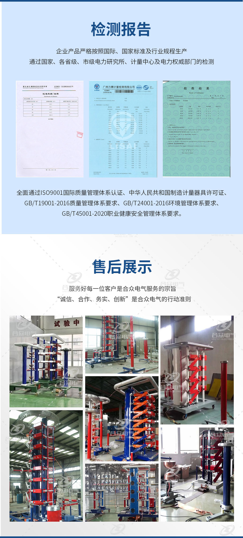 合眾電氣作為雷電沖擊電壓發生器生產制造的老廠家,研發技術底蘊深厚,售后服務體系完備完善,目前已為千余家客戶提供過串聯諧振相關售后服務。