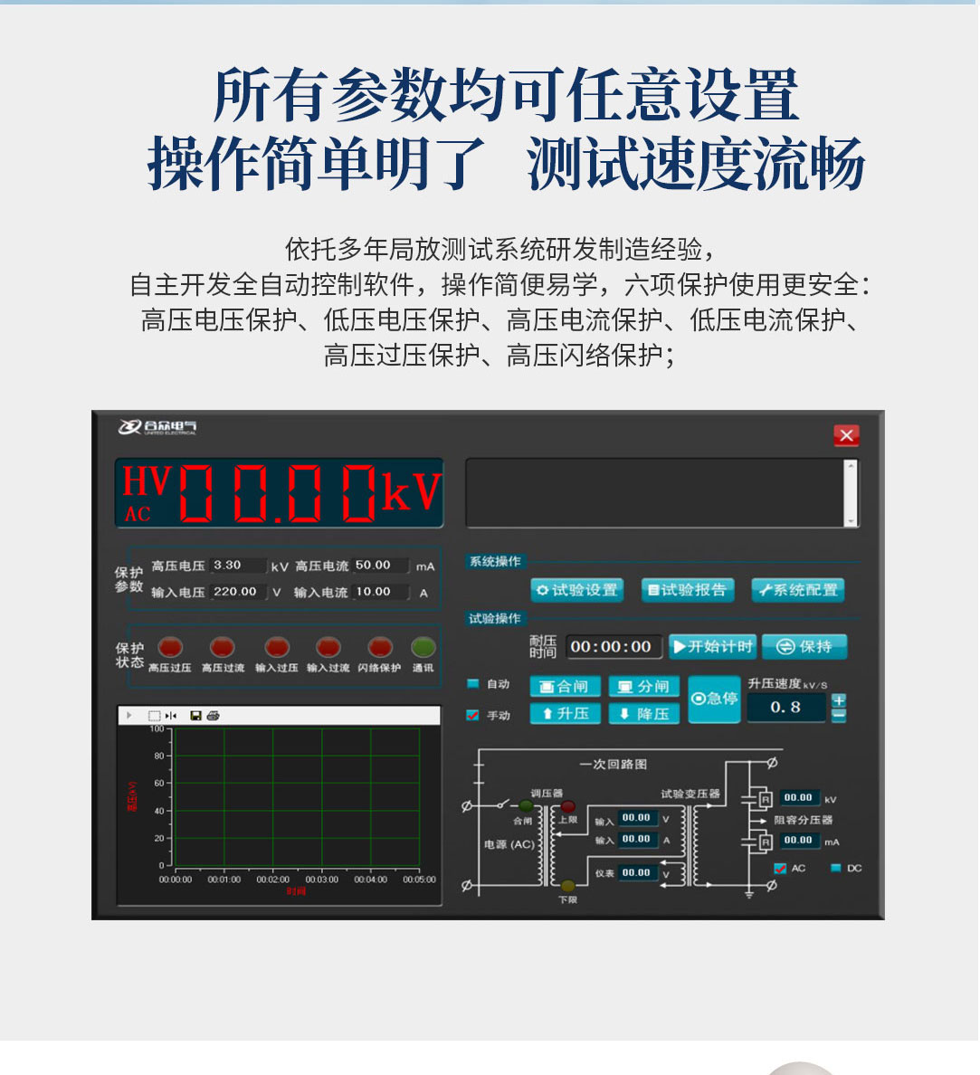 5、本測試系統所有測試參數均可根據要求任意設置,操作簡單明了,測試速度流暢,顯示數據清晰直觀;